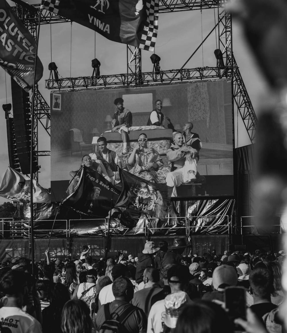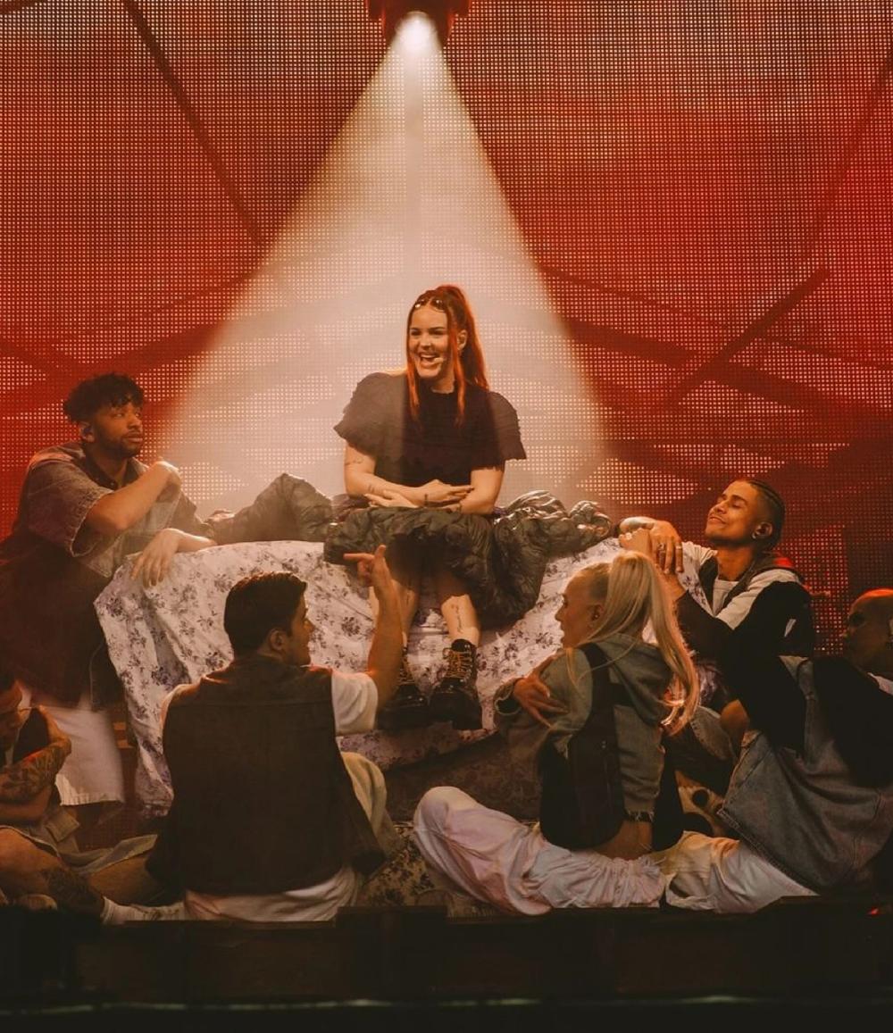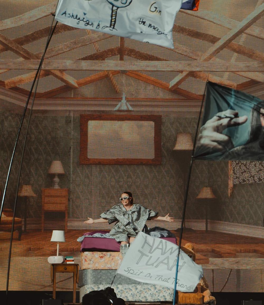 Developing on from the 2023 The Unhealthy Club Tour design, we took it to the next level by stripping back the set pieces for tourability and adding hyperrealistic set extensions beyond the stage. Teetering on the line between real and imaginary, this new version of the show shifted between three acts, the first taking place 'inside' where the bedroom built on over a surreal floating domestic space. Then, we drifted down in the sky finding the exterior of the house floating on clouds while Anne-Marie performed her biggest tracks before stripping it back to a sunset bench-seated ballad. Finally, we land on the 'ground' where we integrated our original bus shelter and cafe scenes from the 2023 tour. Pairing up with a dream team of lighting, choreo, and Anne-Marie herself as joint creative directors, it was a true collaborative effort to make this unique and surreal show a reality. Oh, and did we mention her piano was floating this time?