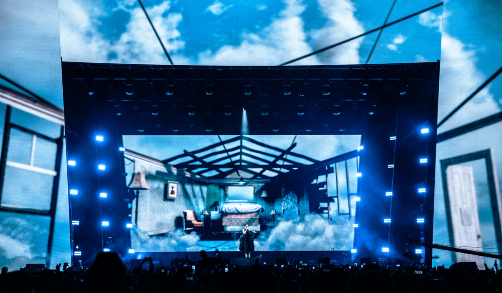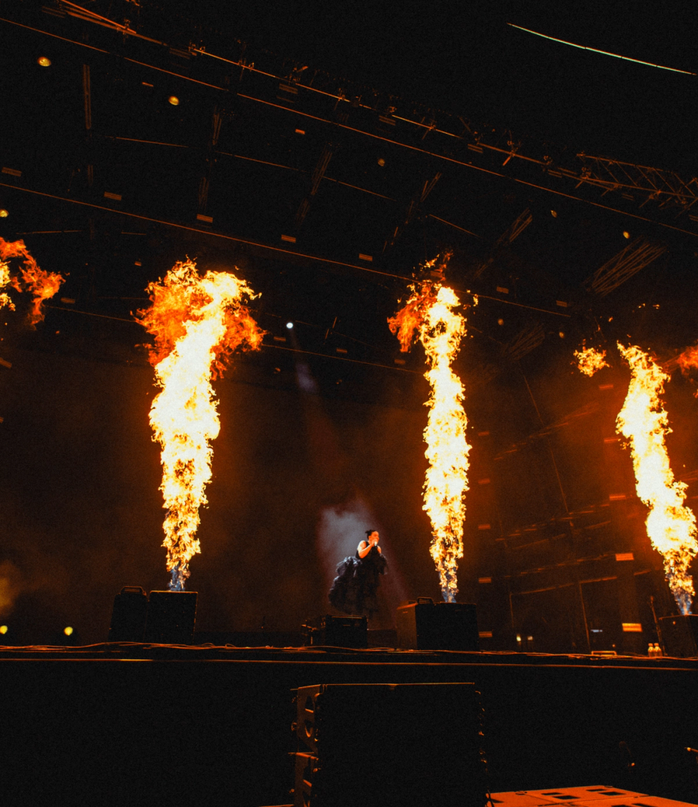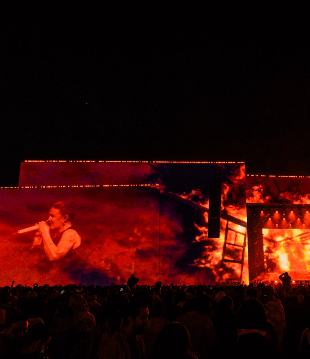 With Anne-Marie's show at MDLBEAST arose the challenge of translating our entire screen-free stage design to Soundstorm's 11,000 pixel screens without the use of any physical set. In order to keep the same concept as Anne-Marie's Unhealthy tour, but adapt it to screen, we created 3D modelled versions of the set and extended the screens through sky and sun passes, using screen graphics as set extensions to immerse Anne-Marie within her world within the Soundstorm stage.