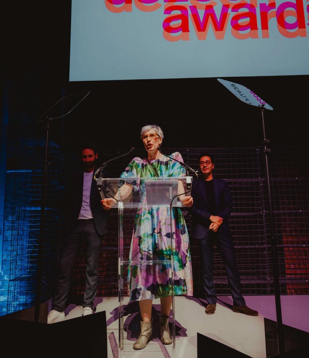 Dezeen’s annual awards celebrates design excellence across a wide plethora of outputs throughout the design world. We wanted to physically translate these values into the design for the 2023 awards. The concept was informed by ‘layering’ which hinted towards the wide variety of project types and design solutions. This was further developed through the use of a broad and vivid colour palette, brought to life with lighting. The design was part of a cyclical process where all materials could be directly re-appropriated without modification, or recycled through the supply chain to support Dezeen’s 2023 Awards focus on sustainability.