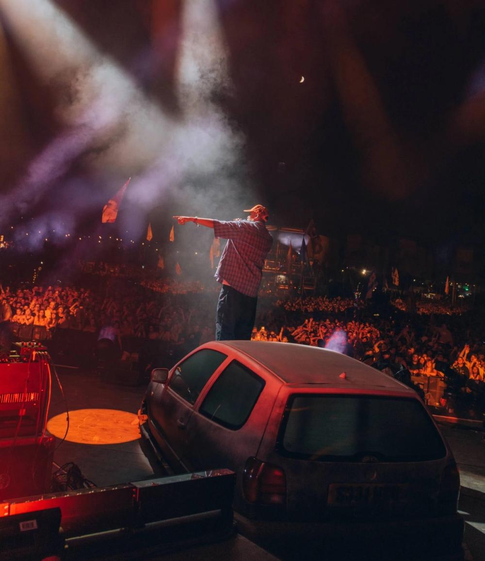 At the age of 25, Loyle Carner called his father to say he was going to be a dad. His father responded to this news by hanging up the phone — but he then rang back some weeks later to say he wanted to teach Carner to drive. It was during these lessons, in a car called Hugo, that Loyle Carner began to mend his previous relationship with his father. For Loyle Carner's Hugo tour, we used the actual car from the driving lessons as a set piece on stage and told this story of hate giving way to forgiveness through the day cycle of light, setting sun to a new day's sun rise. To best utilise our Hugo Tour design for Glastonbury's West Holt stage, we were able to use our original set design, but have additional screen content that highlighted the day cycle of light. This addition added a layer of life to our initial set design, and was one of our largest audiences of the tour, ending the Hugo Tour on the ultimate high note.
