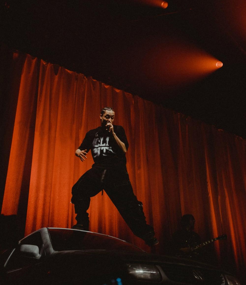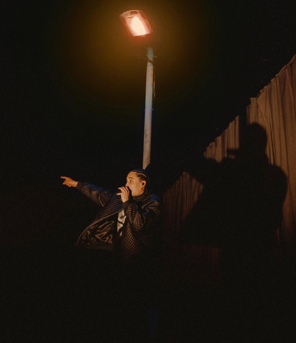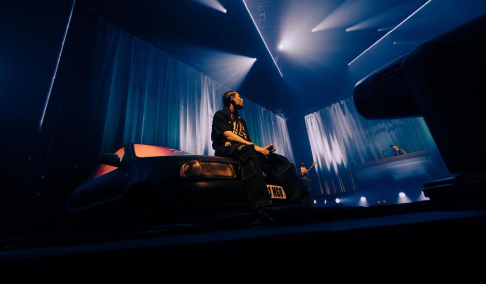 Loyle Carner's tour was designed to coincide with his 2023 album Hugo, a poignant narrative recounting the journey of reconnecting with his father amidst becoming a new father himself. The album traces their relationship from animosity to forgiveness. To physically manifest this emotional arc, the tour design encapsulated a 12-hour day/night cycle, embodying the album's moods from the red sunset of 'Hate', passing through the contemplation of night, towards the dawn of a new day in 'HGU'. Incorporating a physical car prop, street lamp, and gradient back drape, we wanted to convey a sense of progression and development. The key set props and lighting looks were designed to be adaptable and modular to work with the various venue and stage sizes across the tour.