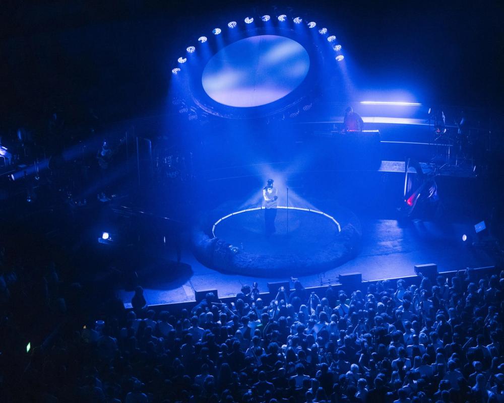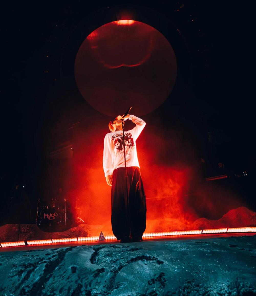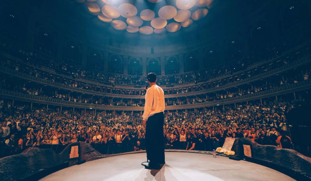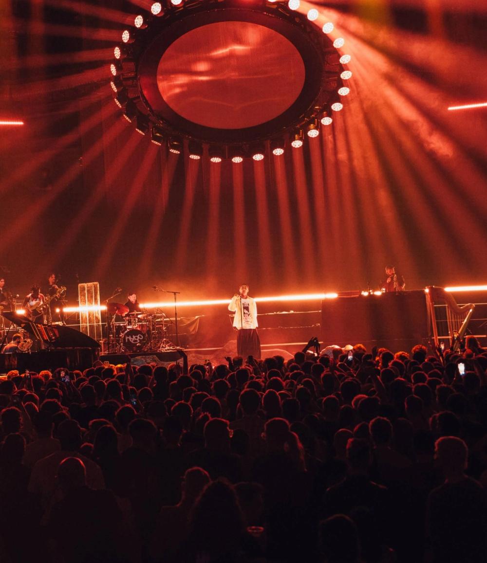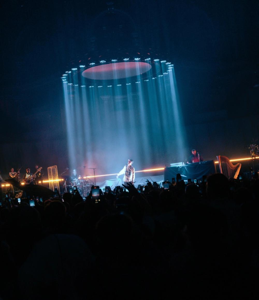After the Hugo Tour had been running for a year, we were asked to design a show for Loyle Carner's Royal Albert Hall performance and live recording. This show was in part a culmination of the Hugo tour but with one foot in the future and sense of development in Loyle’s career. Loyle Carner’s performance at The Royal Albert Hall as entitled by the artist "All The Way From The Sun", employed the tour’s 12 hour sun cycle concept to physically describe the emotional journey of the album. But for this seminal, stand alone show the metaphor was manifested as a literal sun. We knew we wanted to go big for this moment, as it marked a significant moment in both Loyle’s trajectory and UK rap’s growing recognition and influence by traditional institutions. To do so, we created a set which placed Loyle Carner bathed in sunlight as he stands on a baron rock - emotionally and literally “All The Way From The Sun”.