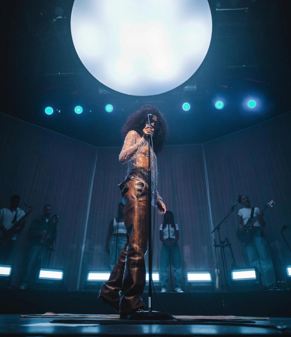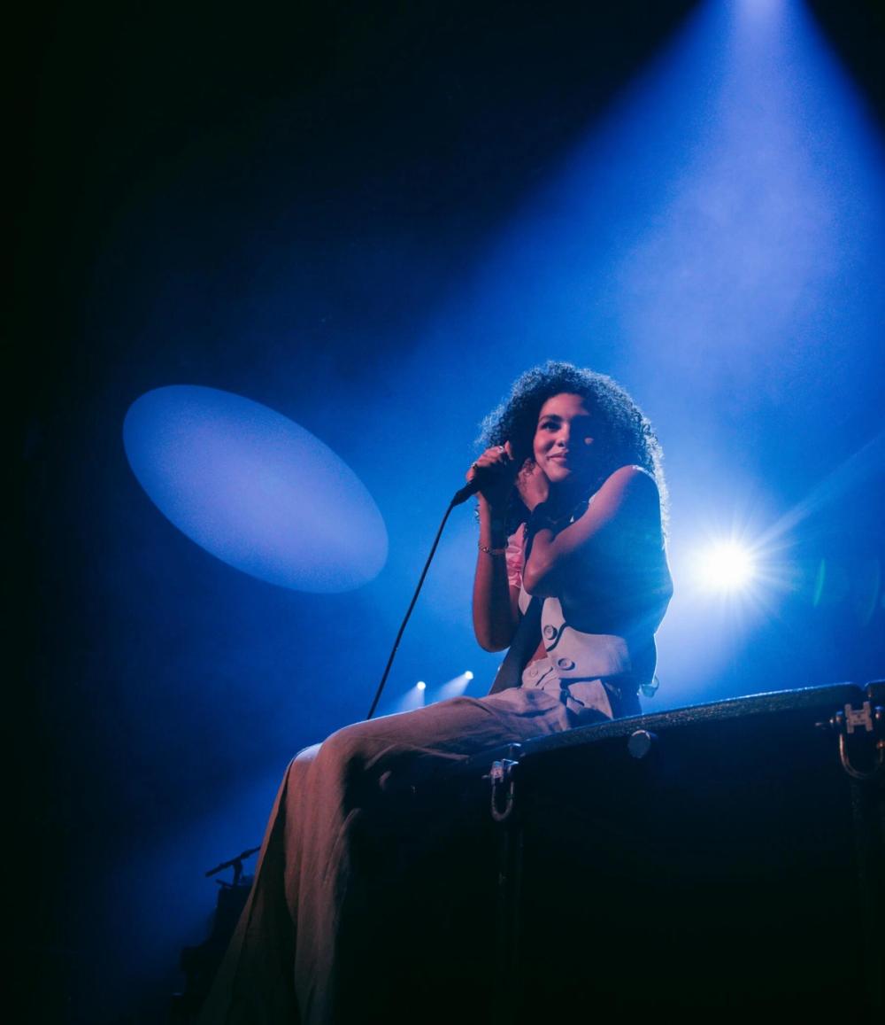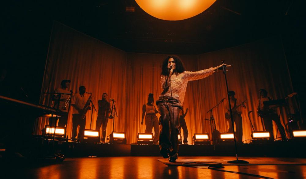 Olivia Dean has many sides. She is confident, adventurous, playful, curious, chaotic, anxious, insular and a perfectionist. She beams bright yellow sunshine when she enters a room, envelops you in a warm red glow of love, cries a deep blue sadness and follows with a glittering sparkle of laughter. "Messy" is a collection of all these things and a study of what and who makes her feel. The spatial concept for Olivia Dean’s EU tour was based on the idea of refraction, plotting the stage based on the lines of light and colour from prismatic refraction. Olivia is conceptually the equivalent of the prism - the epicentre of the stage from which all light, colour and energy flows. This design landed as a set of sheer drapes composed of thin strips of fabric that each have a subtle colour, which when overlaid form blended colours as they intersect.