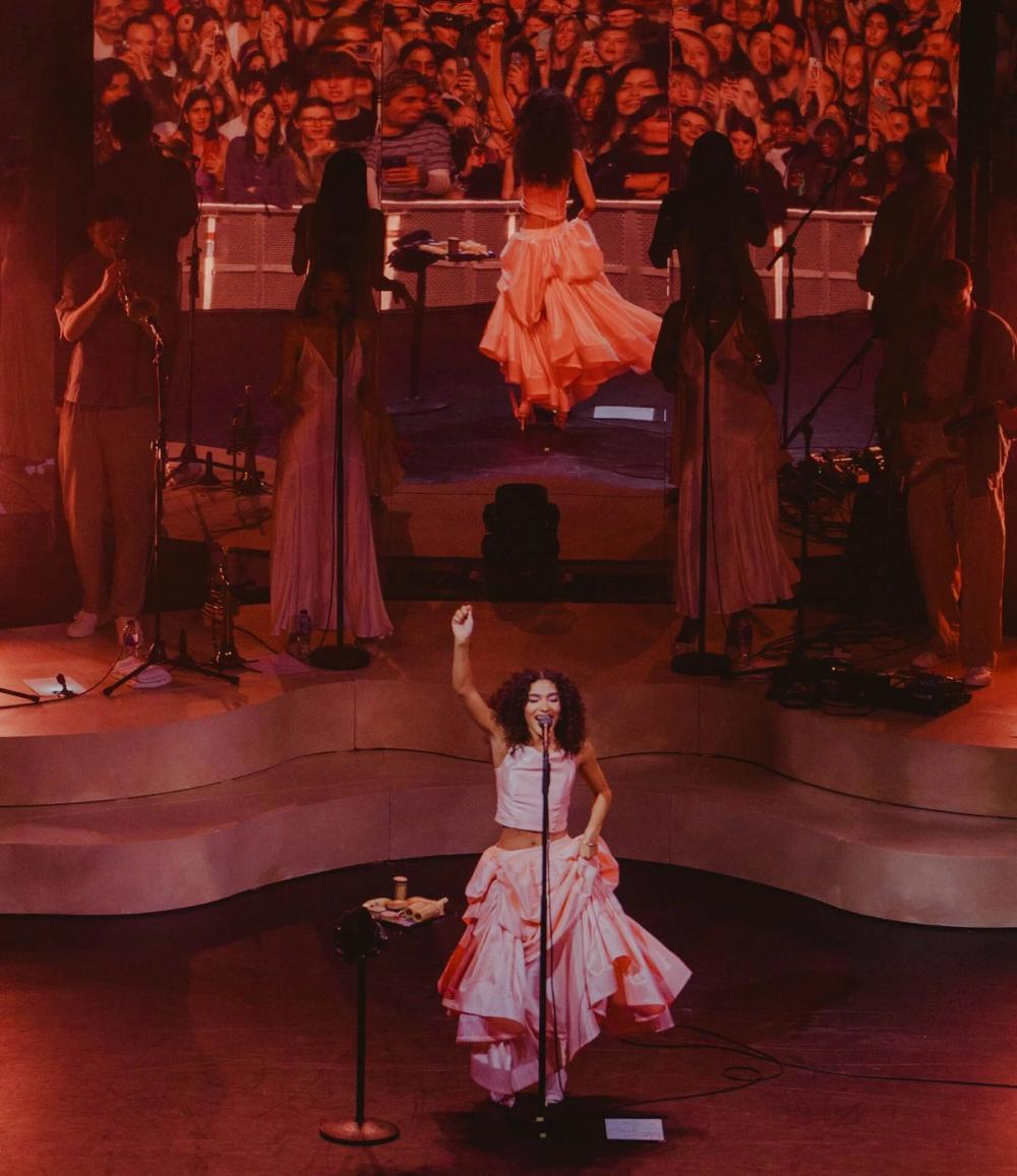 Drawing reference from the classic elegance of Diana Ross and The Supremes, our show design for Olivia Dean drives connection and growth through historical reference and mirrored reflections. By using mirrored textures, we're able to integrate the audience into the performance through reflection, similar to Olivia’s Coachella set, while also paying homage to the opulence of the 1960s’-70’s soul. Beyond this, our custom riser design allowed for fluidity in the stage design and a removal of all sharp edges.